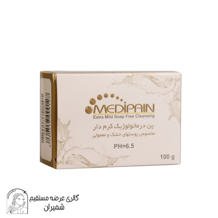 پن درماتولوژیک کرم دار مدیپن با اسیدیته ۶,۵ مخصوص افرادی طراحی شده که پوست معمولی و خشک دارند. استفاده از این محصول موجب میشود تا پوستی نرمتر و شفافتر از قبل داشته باشید. یکی از مواد موثر موجود در این پن، کواترنیوم ۷ است که به پوست نرمی میبخشد. نشاسته گندم و روغن برنج نیز از دیگر مواد موجود در پن درماتولوژیک مدیپن است که از پوسته ریزی جلوگیری کرده و شفافیت پوست را دوچندان میکنند. استفاده از صابون جهت شستشوی پوست به خصوص در افرادی که پوست خشک دارند، مناسب نیست و ممکن است سبب ایجاد خشکی بیشتر و در نتیجه اگزمای پوستی شود. حتی به اشخاصی که پوست چرب نیز دارند استفاده از انواع صابون به دلیل قلیایی بودن توصیه نمیشود چراکه ممکن است چربی پوست خود را به مرور زمان از دست داده و پوستشان خشک شود.