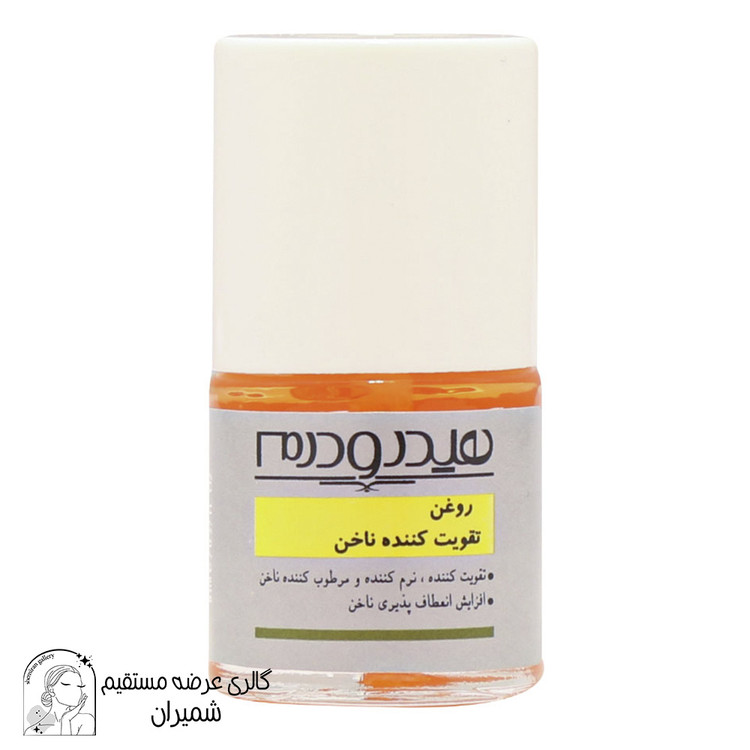 روغن تقويت کننده ناخن هيدرودرم با توجه به نياز افراد در اختيار مصرف کنندگان قرار داده که کاملا طبيعی توليد شده و اثر نرم کنندگی و مرطوب کنندگی در سطح ناخن را حفظ می کند. اين محصول حاوی کمپلکس تقويت کننده و مرطوب کننده روغن های بادام شيرين، گل گاوزبان، جوجوبا و دانه انگور و ويتامين های E و A است که اثرات مفيدی را روی ناخن اعمال می کند. روغن تقویت کننده ناخن هیدرودرم با عنوان تقويت کننده ناخن با حجم ۸ ميلی لیتر برای افرادی که ناخن هايشان به مراقبت احتياج دارد مناسب است.